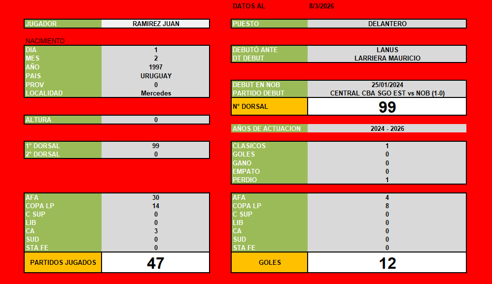 Dorsal más alta de la historia. Debut del Colo Ramirez, delantero de nacionalidad uruguaya proveniente del Club Nacional de Montevideo. Ingresó a los 62' por Ignacio Schor con la dorsal 99 en su espalda , fue el 25/01/2024 por la fecha 1 de la Copa de la Liga 2024. |